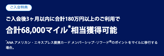 2025年12月現在、ANAアメックスゴールドは入会特典として、合計68,000マイル相当の獲得が可能です。