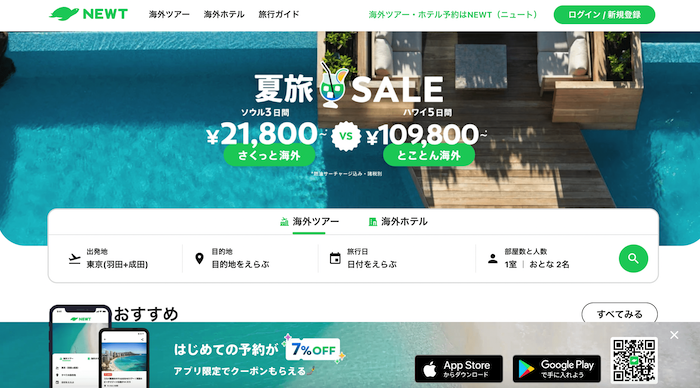2022年に令和トラベルがリリースした日本発の国内ホテル・海外旅行予約サービスNEWT(ニュート)について解説します。 海外ツアーやホテルをスマホアプリからかんたんに予約できるのがメリットで、英語が苦手な方や海外旅行初心者でも安心して利用できます... -