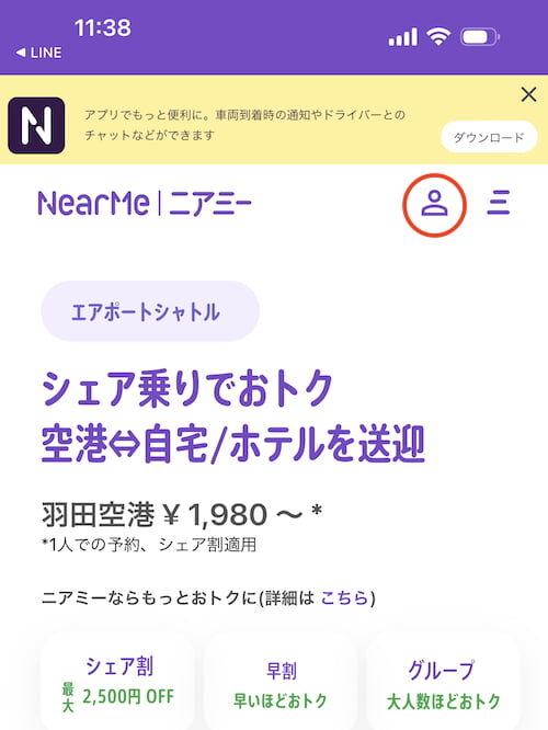 NearMeは自宅やホテルをドアtoドアで移動するのに便利なシャトルサービスで、特に荷物が多い旅行や大人数で一斉移動するときに便利です。