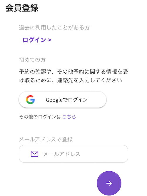 会員登録がまだの人は登録画面が出てくるので、メールアドレスを入力します。