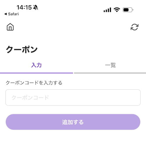また「入力」を選ぶと、持っているクーポンコードを手入力で登録もできます。
